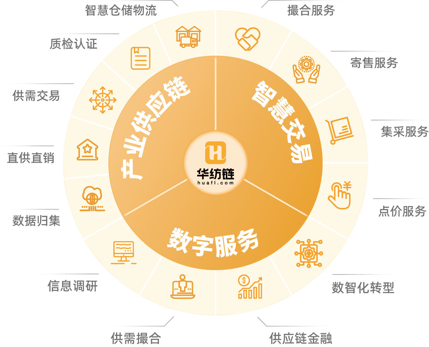 华纺链以“平台+供应链服务”作为切入,,,,围绕“原料+面料+辅料+成衣”等业务场景,,通过大数据、、、区块链、、、、人工智能等数字技术,,,,为纺织服装产业上下游企业提供在线撮合、、智能交易、、、数字工厂、、、、供应链融资、、、政策服务、、质检服务、、、设计师对接、、电商供应链服务等一站式综合服务,,,帮助企业有效降低成本、、提升效率、、、、实现业务增长。。。。